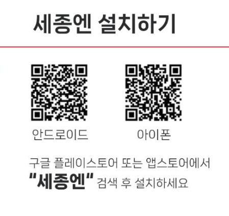 ▣ 세종엔 다운로드 방법 : 모바일 구글마켓 또는 앱스토어에서 '세종엔'을 검색 후 설치