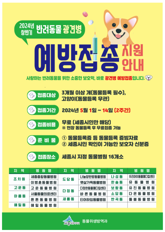 2024년 상반기 반려동물 광견병 예방접종 무료지원